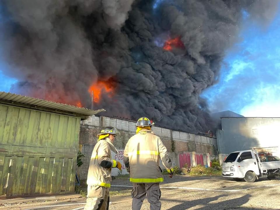 Al parecer, un ciudadano le prendió fuego a un basurero y el fuego se extendió hacia las bodegas de un taller de pintura automotriz, una bodega de plásticos y una tienda de electrodomésticos.