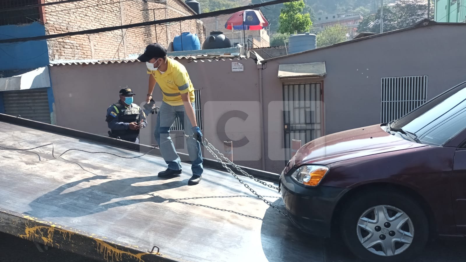 Miembros de la policía municipal de la Alcaldía Municipal del Distrito Central (AMDC), tras previo aviso de prevención, comenzaron a decomisar varios carros mal estacionados en la colonia Hato de Enmedio.