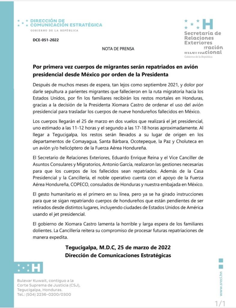 ¡Avión presidencial servirá para repatriar a hondureños fallecidos en el exterior!