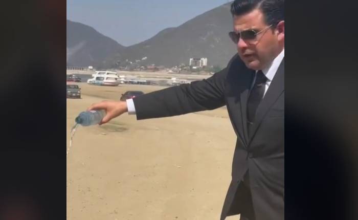Por último, se muestra al candidato en medio de la presa derramando parte del líquido de una botella sobre la desértica zona: “¡Nuevo León cuenta contigo!”, finalizó Carlos Gutiérrez.