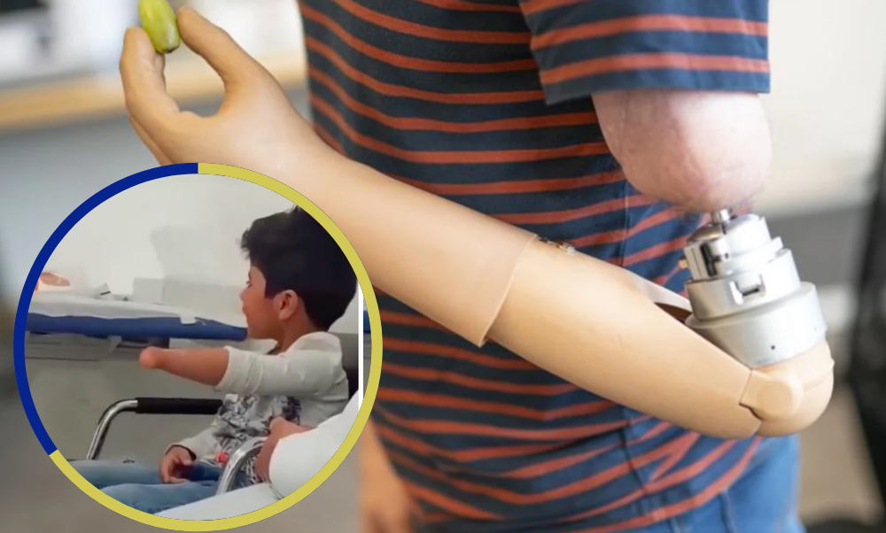 Las buenas noticias llegaron para esta familia, quienes fueron testigos de un cambio en la vida del niño: un doctor le entregó una prótesis hecha a su medida para su brazo izquierdo.