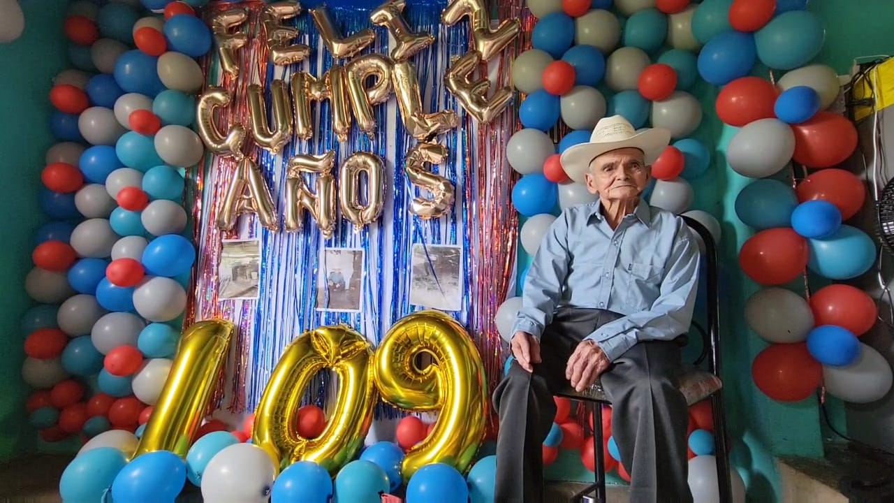 Don Modesto Caballero es un venerable y longevo abuelito quién en este día 15 de junio está cumplimiento nada más y nada menos que 109 años de vida.