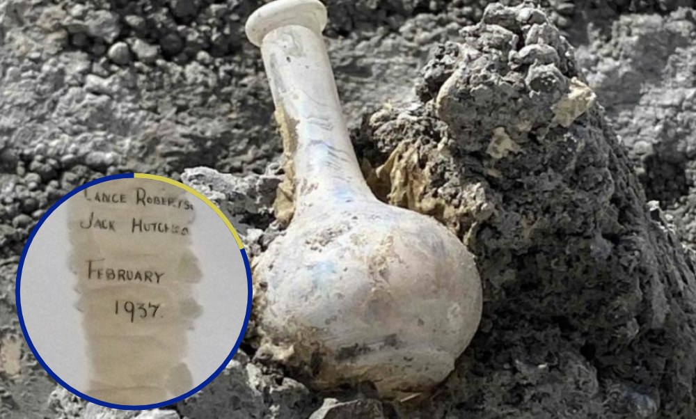 La botella resistió la demolición de la placa de hormigón en la que se encontraba.