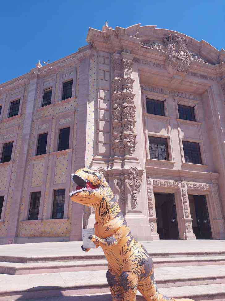 Para muchos es un logro digno de ser compartido en las redes sociales junto a las fotos del día, donde las felicitaciones no tardan en llegar. Sin embargo algunos optan por hacer la diferencia con algo más original, y ese fue el caso de Abel Monsivais Badillo, quien prefirió usar un disfraz de dinosaurio para recibir su título.