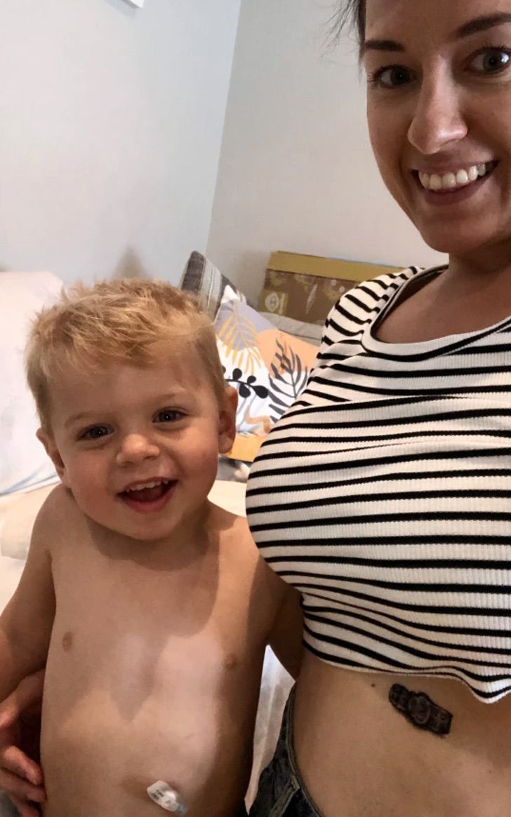 Tanto Rebecca como Tom decidieron realizar un gesto para que sus hijos siempre sepan que sus padres estuvieron allí con ellos: quisieron hacerse tatuajes en sus estómagos para simbolizar el tubo artificial que ambos traen consigo.