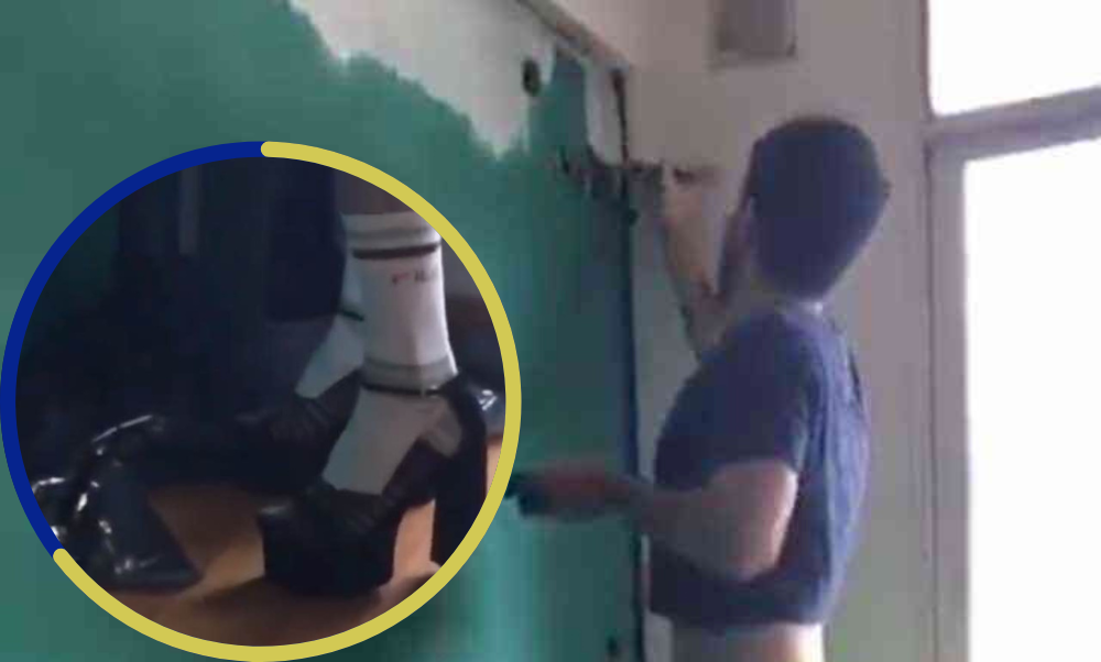 Un hombre compartió en TikTok su mejor técnica para pasar la brocha en los rincones más lejanos de su hogar, como los cercanos al techo. Lo cual le habría resultado útil, además de que se veía cómodo usando el calzado, porque no es fácil mantener el equilibrio.