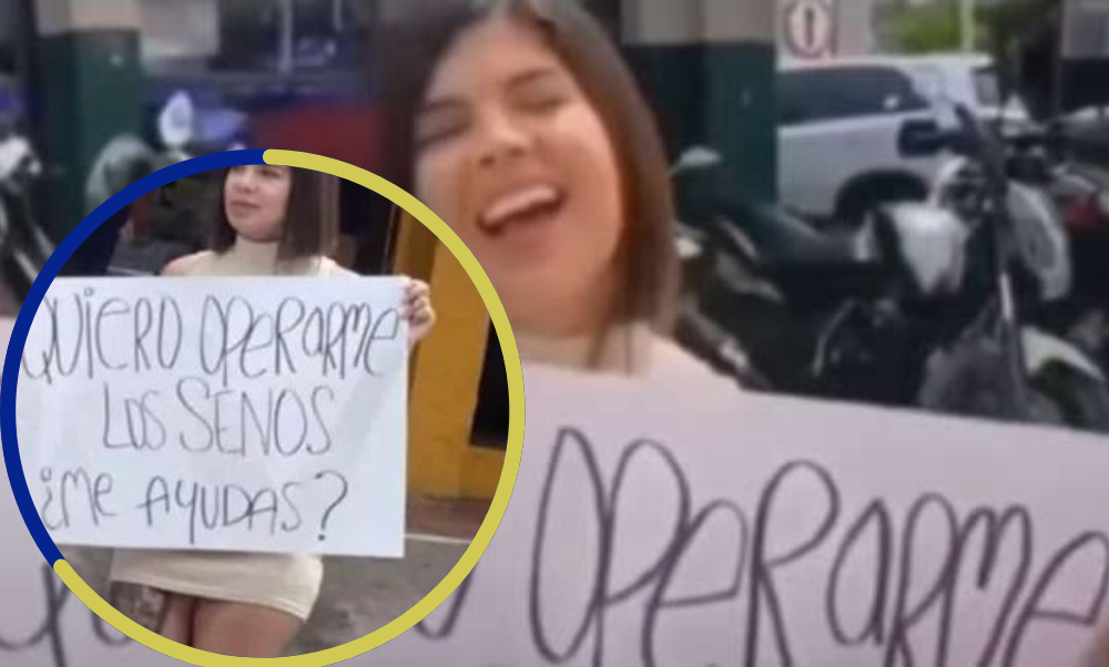En la ciudad de Barranquilla, Colombia, una joven quedó registrada en un video en el que se le ve con un cartel y pidiendo dinero en un semáforo para operarse los senos. La grabación fue difundida en las redes sociales.