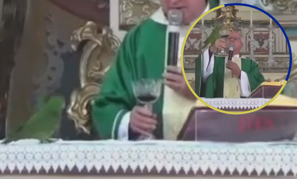 Allí se hallaba el sacerdote realizando la comunión y mientras este intentaba continuar, el animal caminó sobre el altar y se posó en el brazo del religioso.