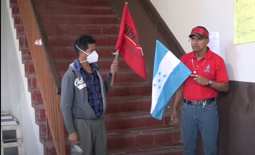 Colectivos del Partido Libertad y Refundación (Libre), llegan hasta el hospital San Felipe a protestar para que empleados afines al Partido Nacional sean despedidos.