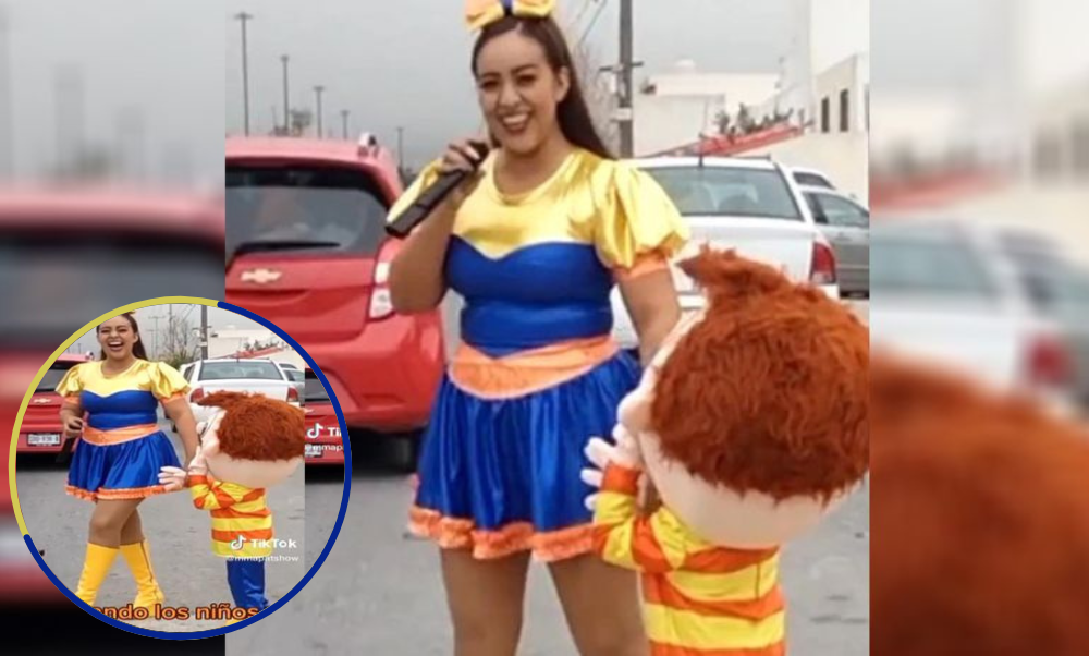 El clip vino por cuenta de @mmapatshow quien nos muestra a la joven y al pequeño vestidos como los personajes de ‘Bely y Beto’ para atraer clientela en la inauguración de un nuevo local gastronómico.