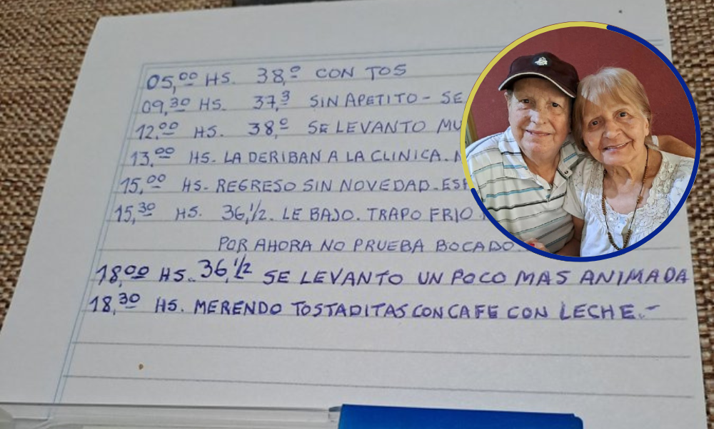 En esta, también venía anexada una fotografía en la que se evidencia cómo el adulto mayor realizó una bitácora en la que anotó con lujo de detalles todos los aspectos sobre la enfermedad de su pareja.