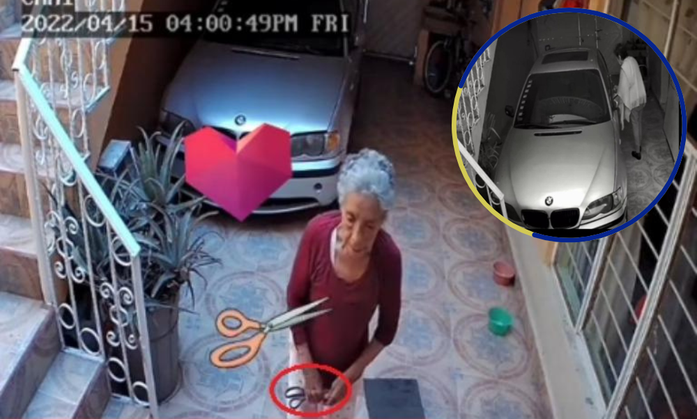 A través de TikTok, la usuaria @annmalveerde compartió el momento en que captó a su abuelita rayando el auto de su hermano, un BMW 320i. El clip grabado a través de una cámara de vigilancia lo acompañó con la frase «Mi hermano: Mi carro en casa estará seguro y no le pasa nada» y en seguida muestra las imágenes con el texto: «Mi abuela en corto rayándoselo con coraje«.