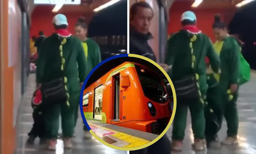 Hay que tomar en cuenta que en los trenes subterráneos puede sentirse mucho calor y altas temperaturas, pero a estos padres no les importó y se pusieron sus trajes de dinosaurios, que tenían aspecto de ser pijamas gruesos.