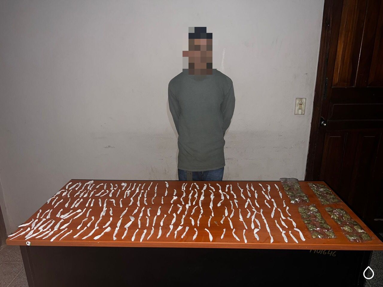 El reporte policial indica que, mediante saturaciones realizadas en la colonia Esquipulas, se dio con la ubicación de esta persona quien ya era investigado por distribuir drogas.