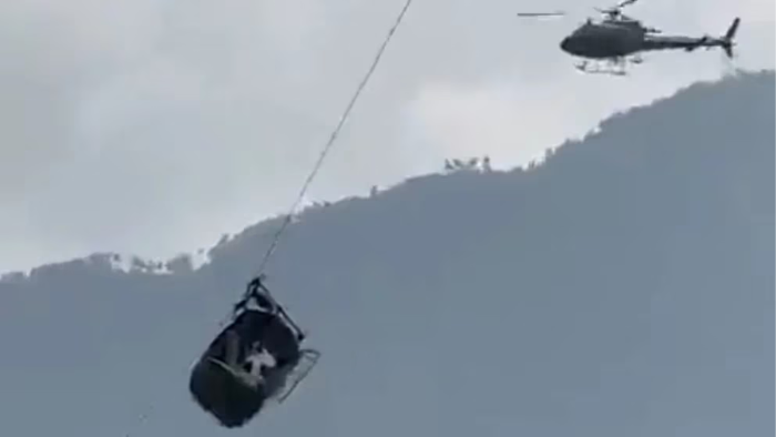 Luego, los rescatistas usaron el cable que evitaba que la góndola se hundiera en el valle como una tirolesa para rescatar a dos niños más.
