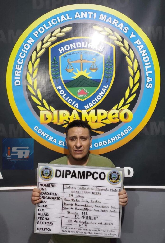 El operativo se ejecutó en el barrio Barandillas de San Pedro Sula, Cortés. Se trata de alias EL PARCE, quien tiene aproximadamente dos años de ser miembro de la banda delictiva M1, fungiendo como gatillero, siendo el responsable del cobro de la extorsión y la realización de atentados contra el sector transporte en el cono sur del departamento Cortés.