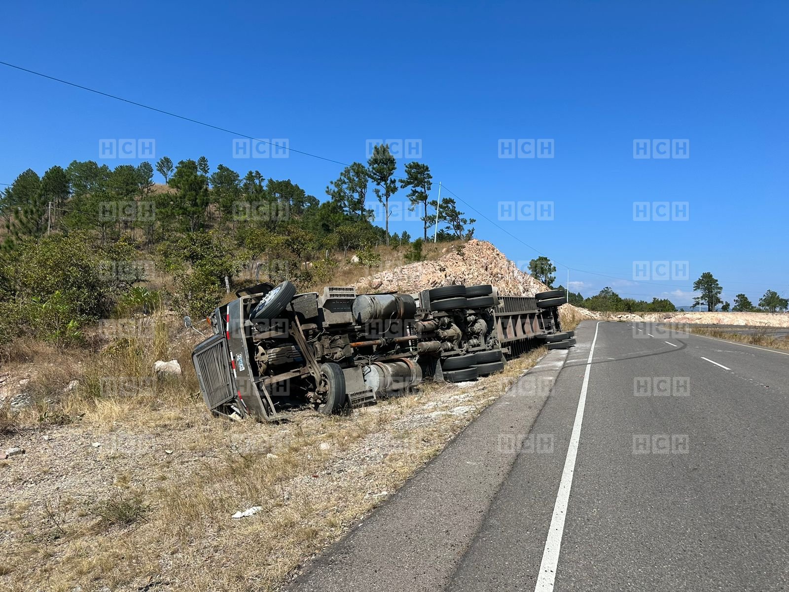 Los hechos se dieron cuando una rastra volcó en la carretera, afortunadamente ninguna persona resultó herida.