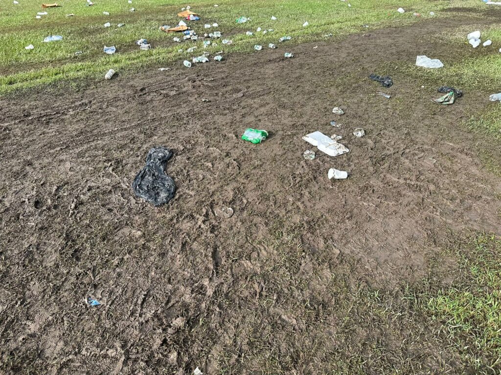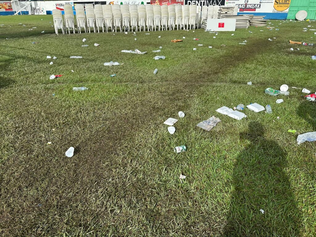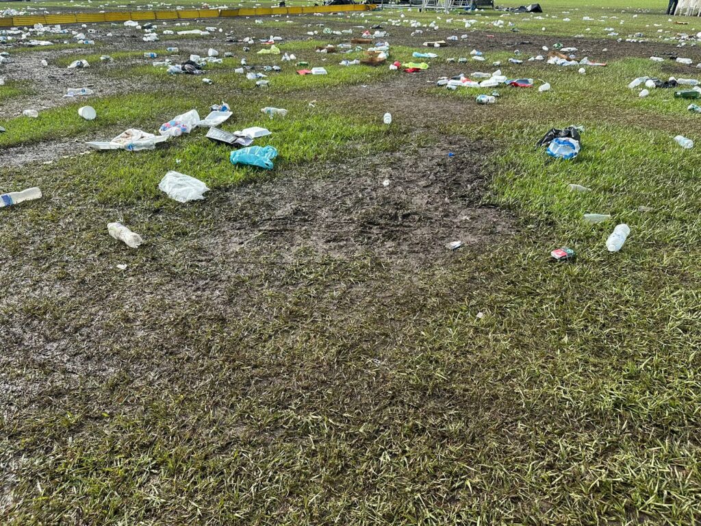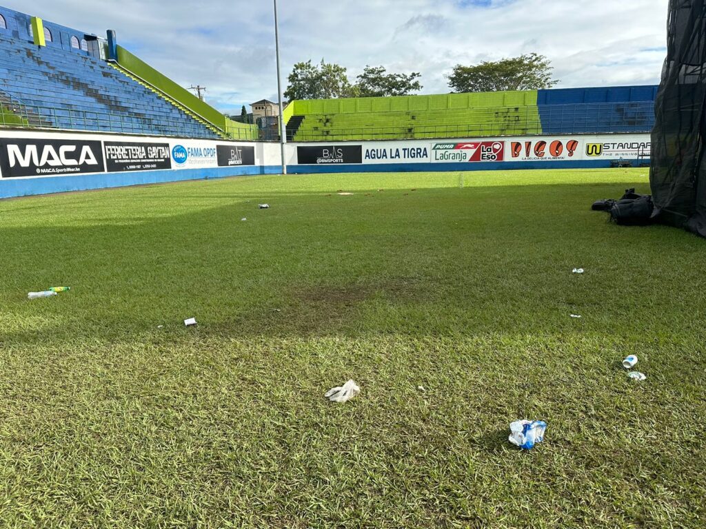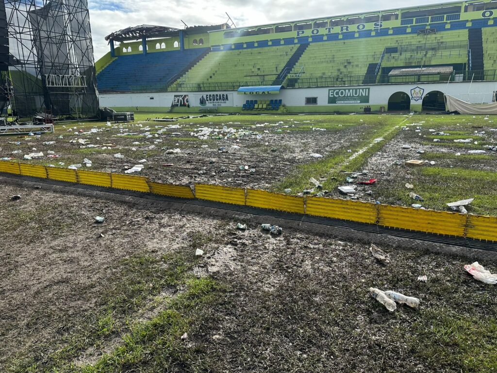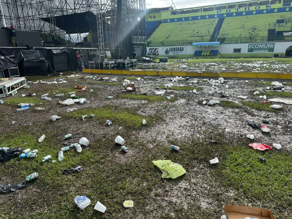 La cancha de los Potros quedó inutilizable luego de que miles de personas se pararan en el verde césped y lo dejaran completamente dañado.