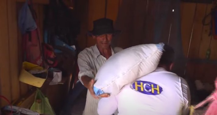 El hondureño beneficiado se manifestó contento y bendecido tras recibir estos alimentos.
