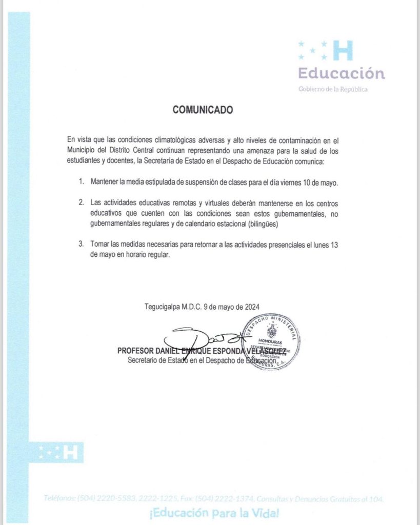 De igual manera se aconseja, tomar las medidas necesarias para retomar las clases el próximo lunes 13 de mayo.