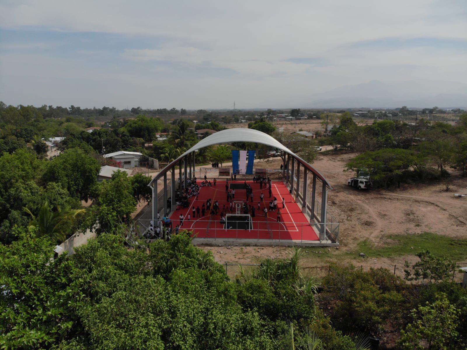 La presidenta Xiomara Castro inauguró la cancha multiusos número 53 en la Villa de Antonio, Comayagua, zona central de Honduras.