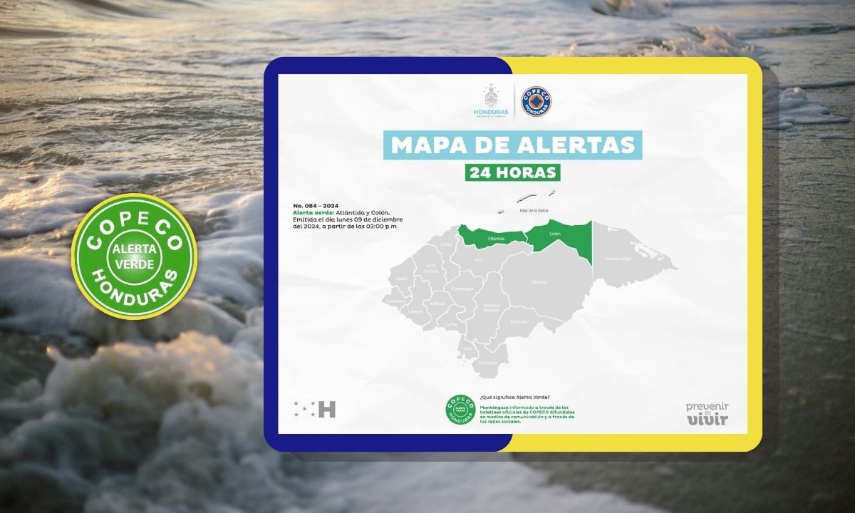 La Comisión Permanente de Contingencias (Copeco), ha informado este lunes que se mantiene la alerta verde por 24 horas más en dos departamentos del país ante al alto grado de humedad en los suelos y daños que se registran productos de lluvias en el país.