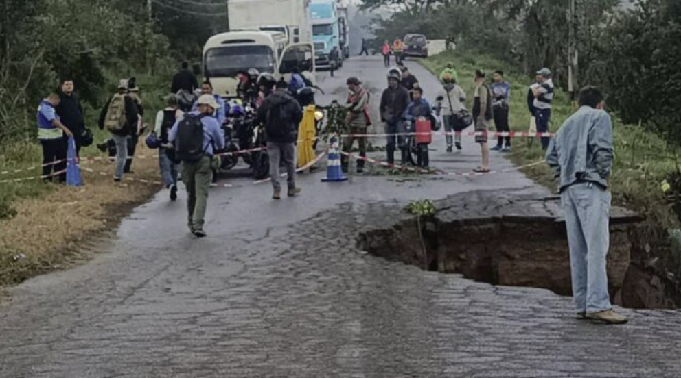 El hundimiento en la carretera afecta el tráfico fronterizo entre Honduras y Nicaragua por el puesto de control de frontera en Las Manos, indicó.
