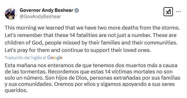 Beshear declaró el estado de emergencia el viernes, y luego agradeció al presidente Donald Trump por aprobar una declaración federal de desastre para acelerar el alivio.