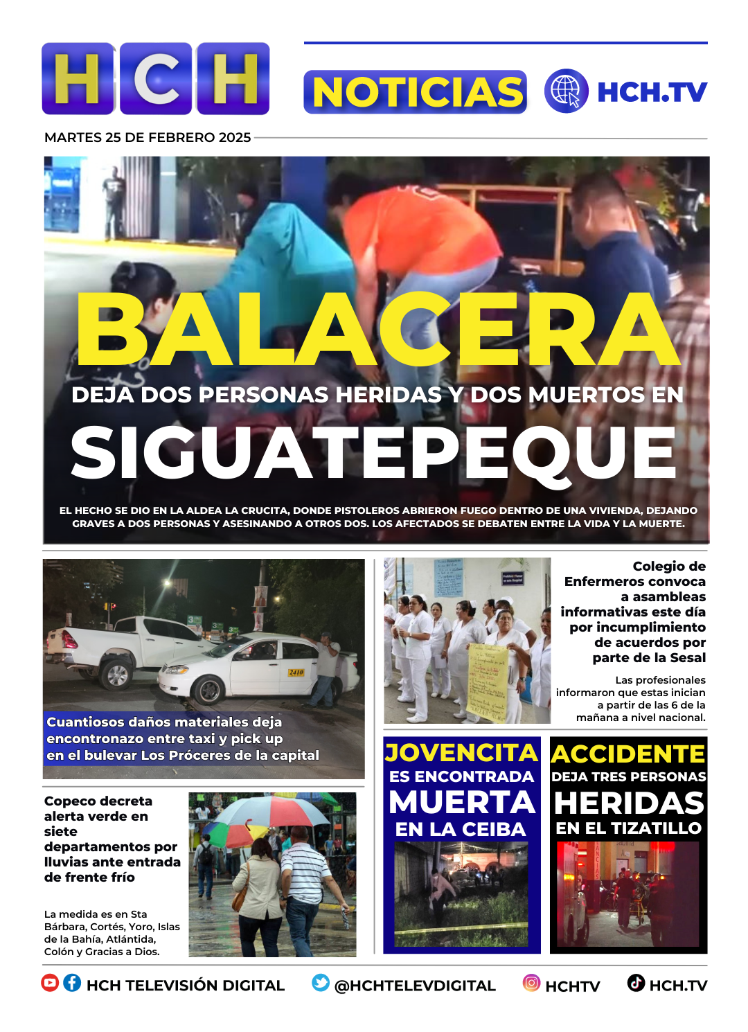 © 2025 - HCH Televisión Digital - Noticias de Honduras y el Mundo. Anillo Periférico, Complejo Empresarial Tegucigalpa, Honduras, C.A. Tel: (504) 2235-3245 / 2235-3246 / 2235-4875 / 2235-4876 LLÁMENOS GRATIS DESDE EE.UU: 3052801682 y 3052801735 © Copyright 2025 - HCH Televisión Digital. Todos nuestros contenidos están protegidos con derechos de autor.