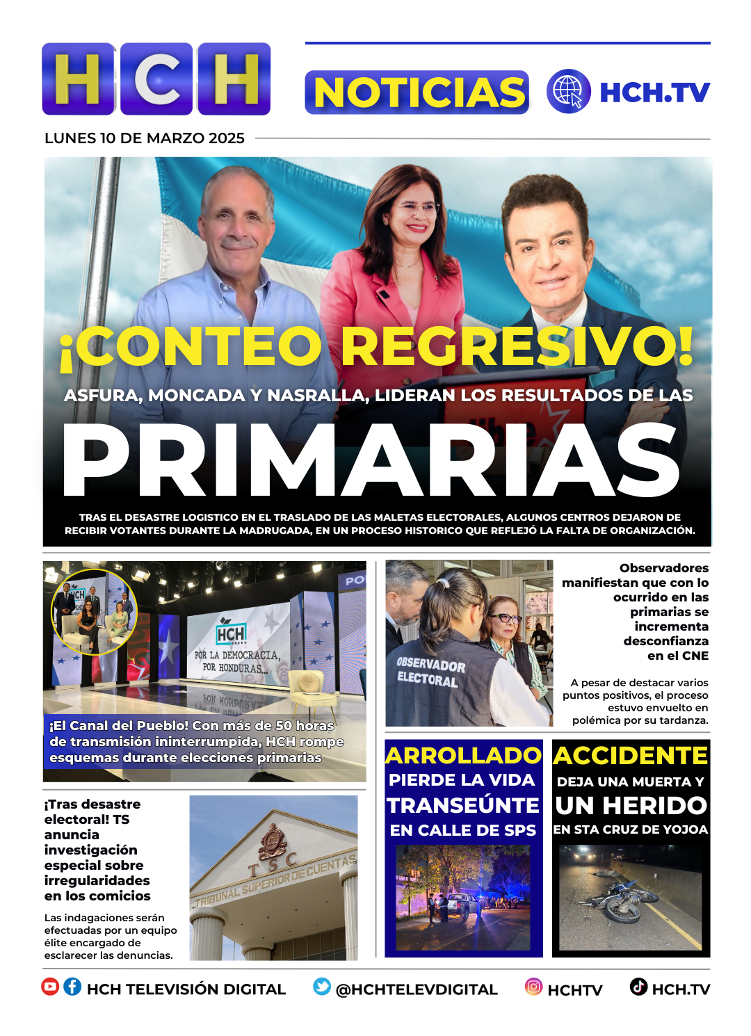 © 2025 - HCH Televisión Digital - Noticias de Honduras y el Mundo. Anillo Periférico, Complejo Empresarial Tegucigalpa, Honduras, C.A. Tel: (504) 2235-3245 / 2235-3246 / 2235-4875 / 2235-4876 LLÁMENOS GRATIS DESDE EE.UU: 3052801682 y 3052801735 © Copyright 2025 - HCH Televisión Digital. Todos nuestros contenidos están protegidos con derechos de autor.