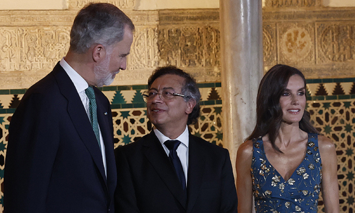 Sin embargo, el presidente de Colombia, Gustavo Petro, no tuvo esta norma de etiqueta en cuenta y al momento de saludar a la reina Letizia, intentó hacerlo de beso en la mejilla, algo que provocó la reacción de la monarca que, manteniendo su compostura, dio un paso atrás, le dio la mano derecha al mandatario y con su brazo izquierdo contuvo al jefe de Estado para que no se acercara más.