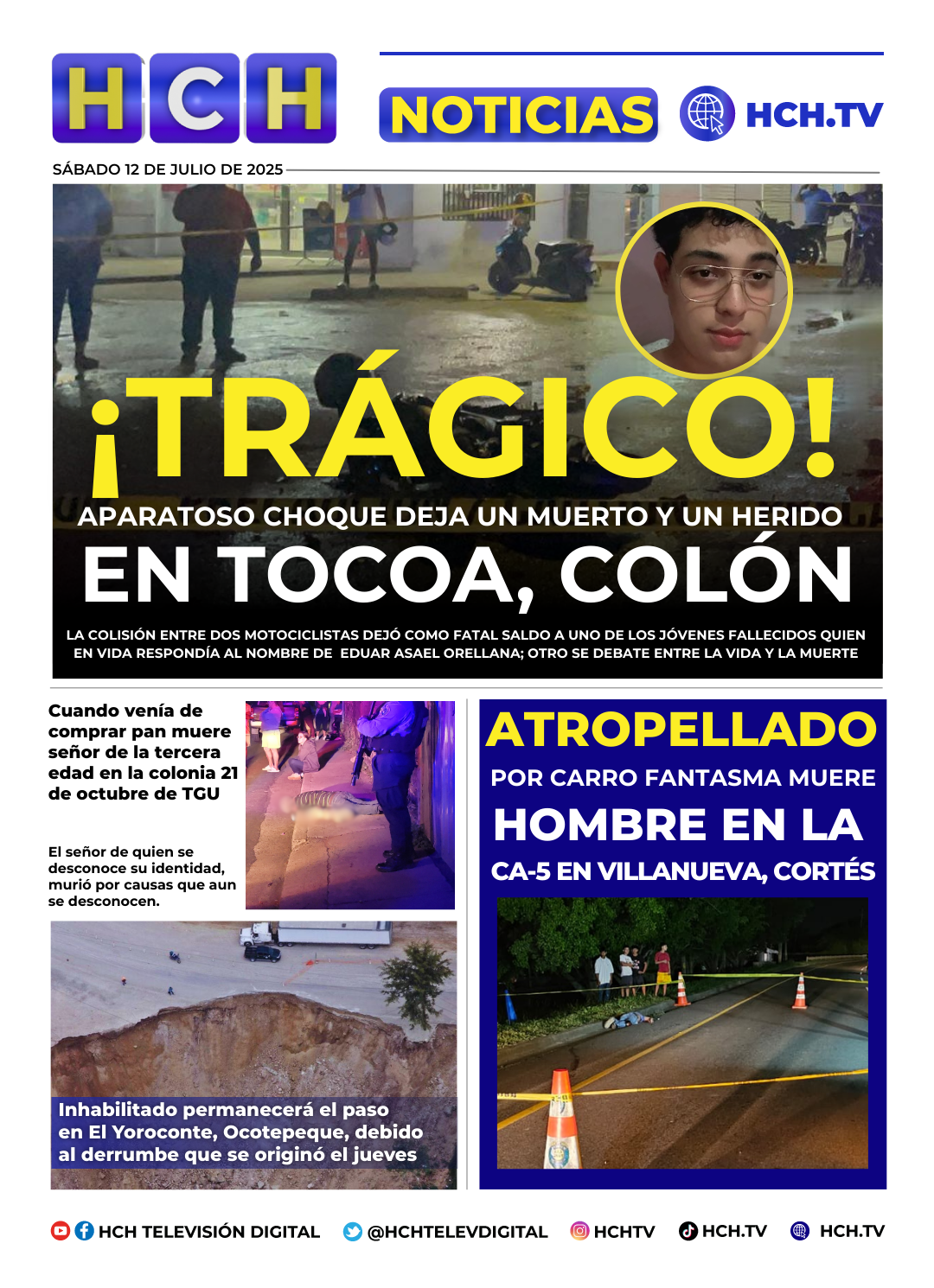 © 2025 - HCH Televisión Digital - Noticias de Honduras y el Mundo. Anillo Periférico, Complejo Empresarial Tegucigalpa, Honduras, C.A. Tel: (504) 2235-3245 / 2235-3246 / 2235-4875 / 2235-4876 LLÁMENOS GRATIS DESDE EE.UU: 3052801682 y 3052801735 © Copyright 2025 - HCH Televisión Digital. Todos nuestros contenidos están protegidos con derechos de autor.