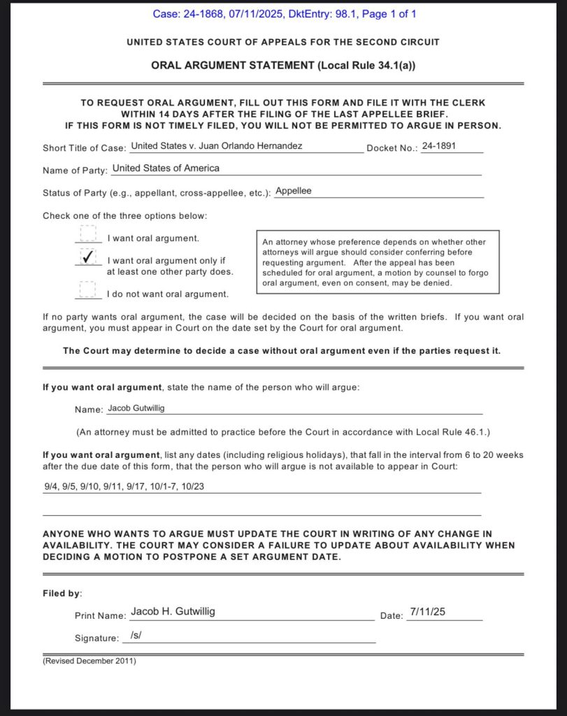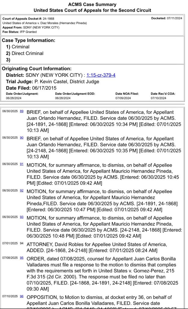 «Caso JOH: El gobierno de EE. UU. responde a la apelación. La defensa insiste: la sentencia debe ser revisada». Este 30 de junio, la Fiscalía del Distrito Sur de Nueva York presentó ante la Corte de Apelaciones del Segundo Circuito sus escritos de respuesta a la apelación de Juan Orlando Hernández.