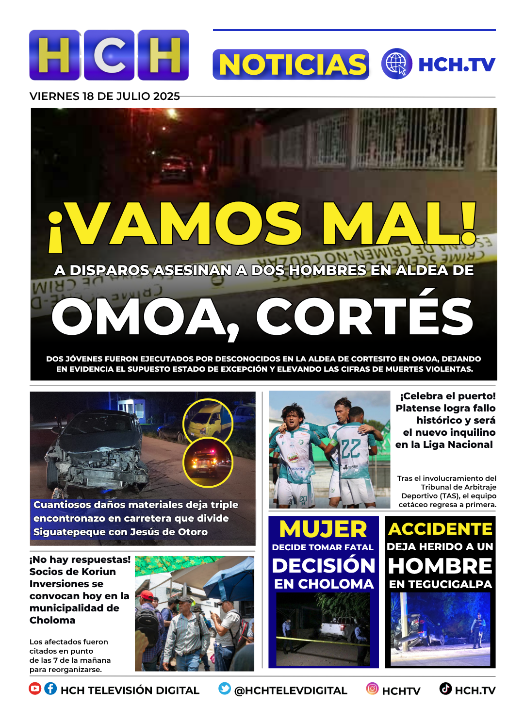 © 2025 - HCH Televisión Digital - Noticias de Honduras y el Mundo. Anillo Periférico, Complejo Empresarial Tegucigalpa, Honduras, C.A. Tel: (504) 2235-3245 / 2235-3246 / 2235-4875 / 2235-4876 LLÁMENOS GRATIS DESDE EE.UU: 3052801682 y 3052801735 © Copyright 2025 - HCH Televisión Digital. Todos nuestros contenidos están protegidos con derechos de autor.
