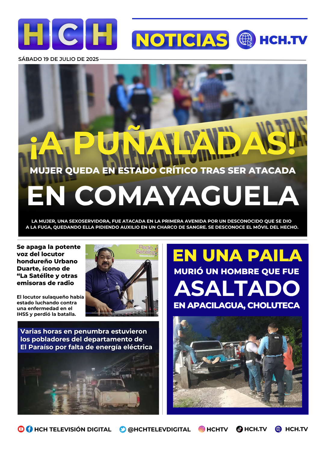 © 2025 - HCH Televisión Digital - Noticias de Honduras y el Mundo. Anillo Periférico, Complejo Empresarial Tegucigalpa, Honduras, C.A. Tel: (504) 2235-3245 / 2235-3246 / 2235-4875 / 2235-4876 LLÁMENOS GRATIS DESDE EE.UU: 3052801682 y 3052801735 © Copyright 2025 - HCH Televisión Digital. Todos nuestros contenidos están protegidos con derechos de autor.