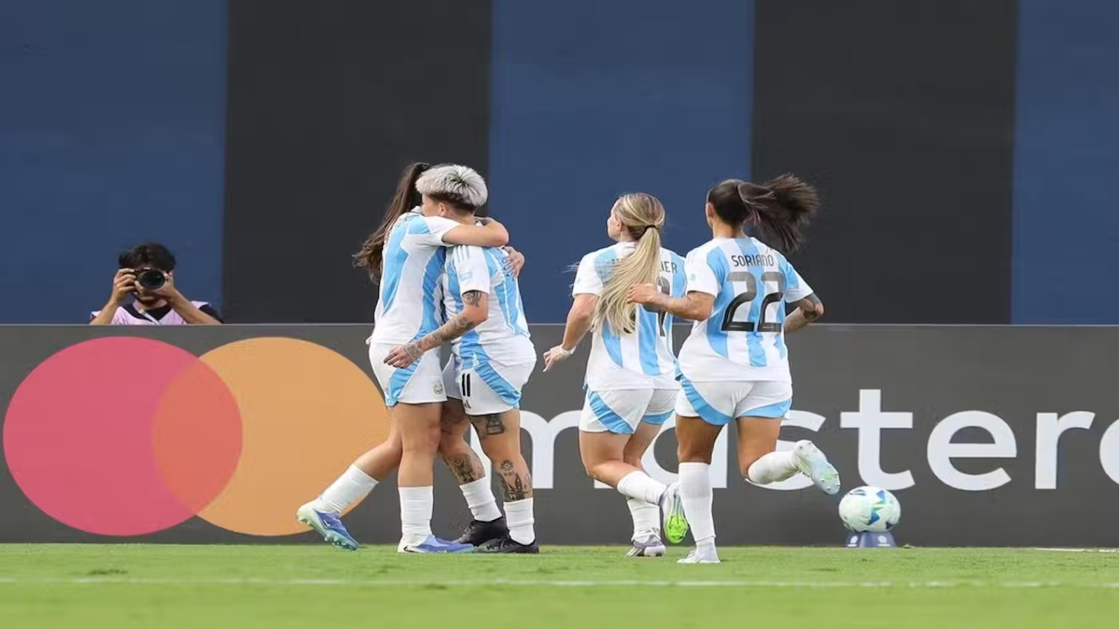 Sin embargo, Argentina reaccionó y logró la primera llegada a fondo antes del cuarto de hora de juego. Tras una buena asociación colectiva, Daiana Falfán desbordó por la banda derecha y le sirvió un centro atrás a Kishi Núñez. La atacante quedó de cara al gol, pero se encontró con la humanidad de Maryory Sánchez que frustró la chance.