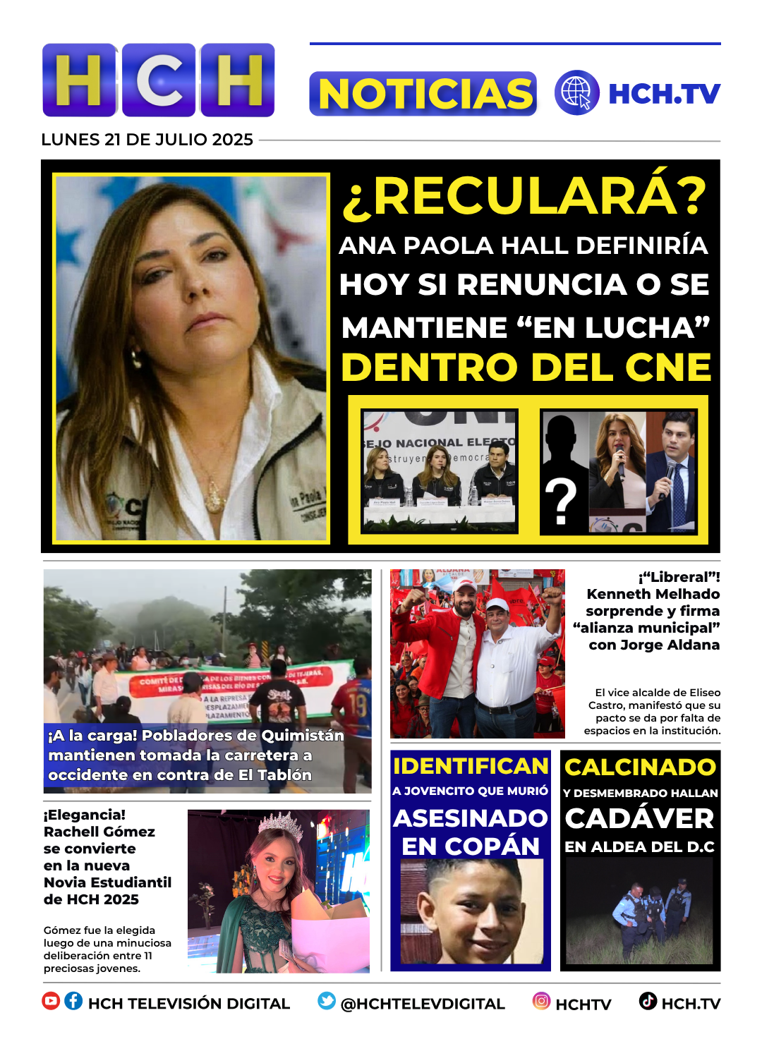 © 2025 - HCH Televisión Digital - Noticias de Honduras y el Mundo. Anillo Periférico, Complejo Empresarial Tegucigalpa, Honduras, C.A. Tel: (504) 2235-3245 / 2235-3246 / 2235-4875 / 2235-4876 LLÁMENOS GRATIS DESDE EE.UU: 3052801682 y 3052801735 © Copyright 2025 - HCH Televisión Digital. Todos nuestros contenidos están protegidos con derechos de autor.