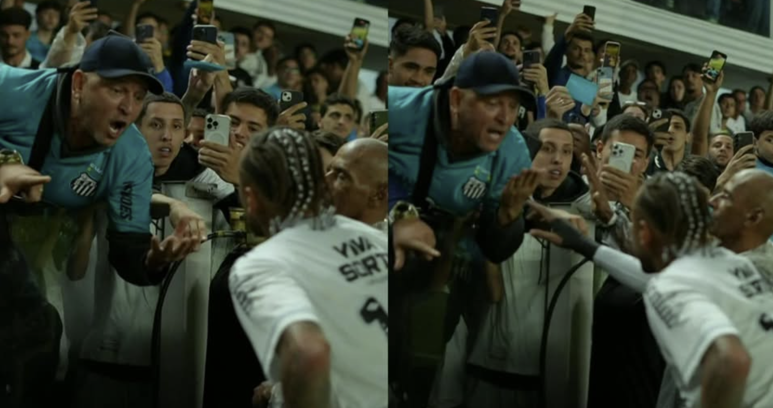 El clima en las gradas era de descontento tras la derrota y la situación en la que se encuentra el club. Apenas terminó el partido, Neymar se dirigió a la tribuna baja y discutió con un aficionado que lo venía increpando incluso antes del pitazo final. La discusión se intensificó, mientras algunos fanáticos mostraban su apoyo al jugador y otros lo reprochaban; la tensión desembocó en un intercambio verbal entre los propios hinchas. El portero Joao Paulo intervino y retiró a Neymar del lugar para evitar que la situación pasara a mayores.