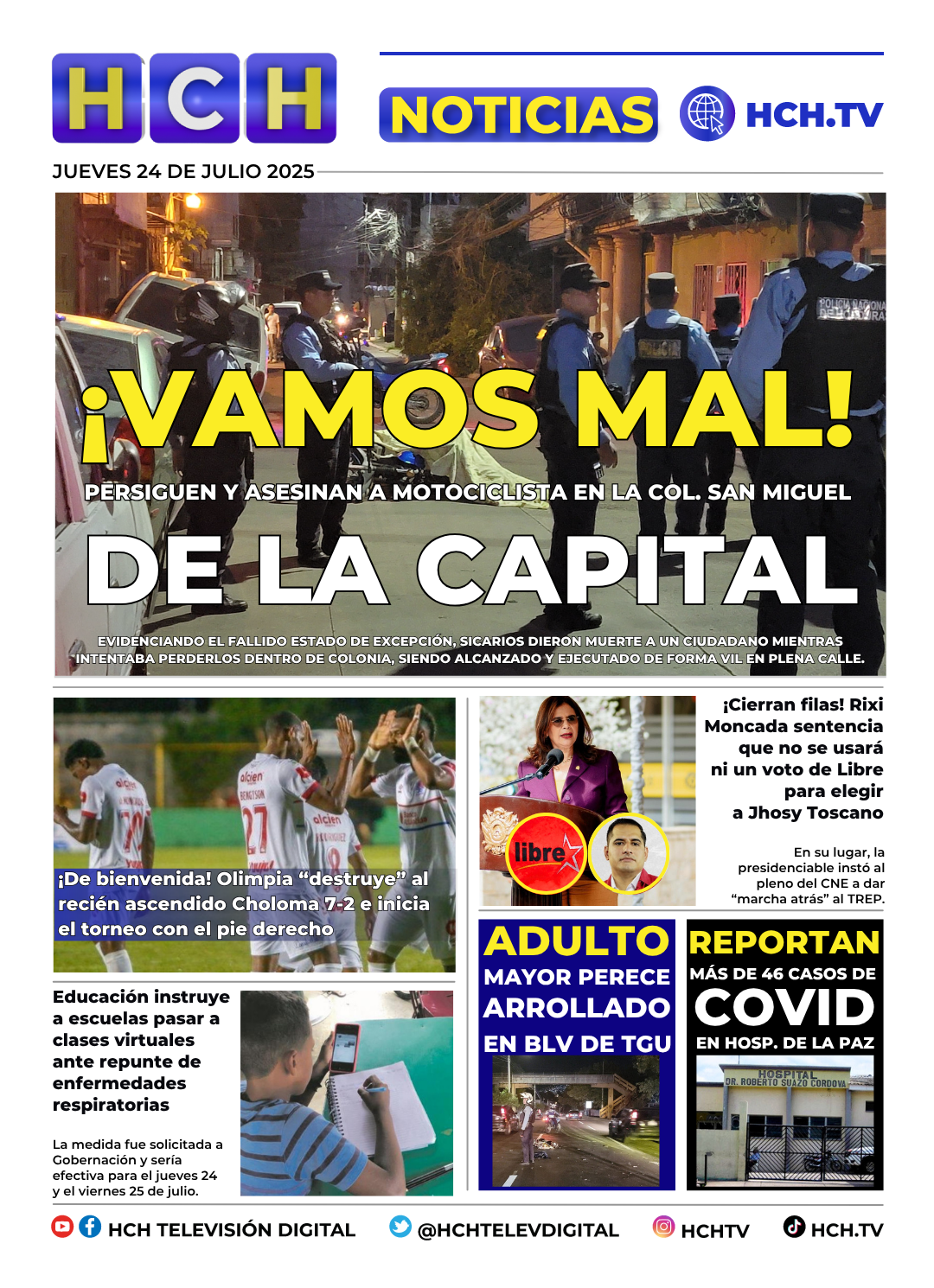 © 2025 - HCH Televisión Digital - Noticias de Honduras y el Mundo. Anillo Periférico, Complejo Empresarial Tegucigalpa, Honduras, C.A. Tel: (504) 2235-3245 / 2235-3246 / 2235-4875 / 2235-4876 LLÁMENOS GRATIS DESDE EE.UU: 3052801682 y 3052801735 © Copyright 2025 - HCH Televisión Digital. Todos nuestros contenidos están protegidos con derechos de autor.