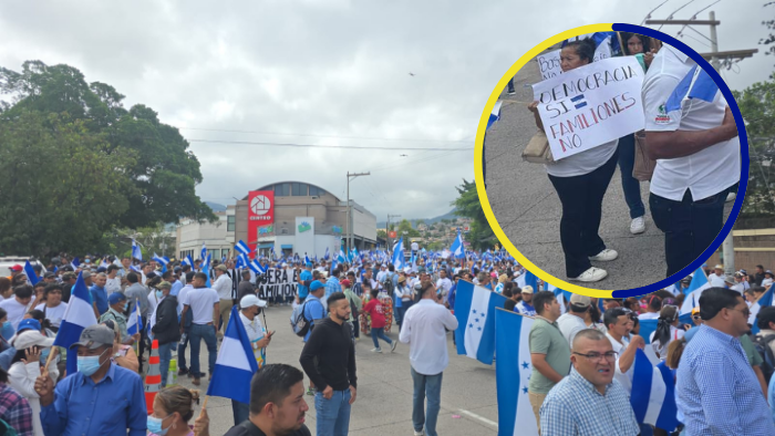 Los asistentes alzan pancartas con diversas misivas que incluyen: «Democracia sí, familiones no… No a la dictadura sí a la democracia» y otras, con las que ratifican el rechazo al oficialismo.