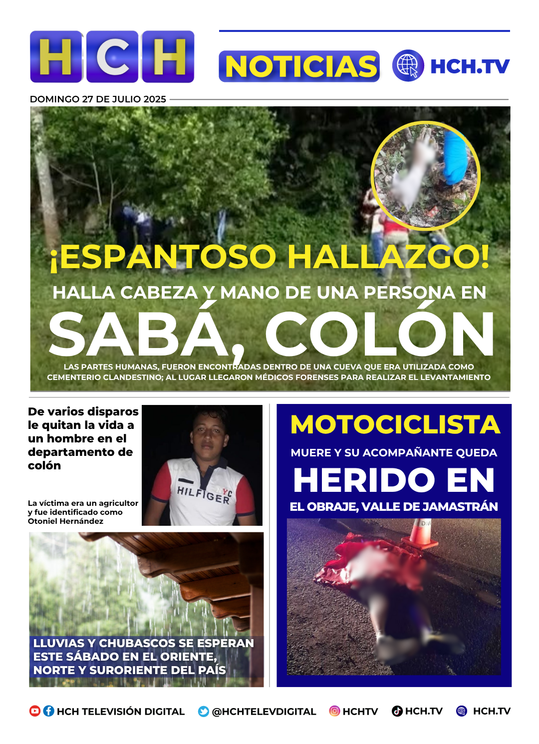 © 2025 - HCH Televisión Digital - Noticias de Honduras y el Mundo. Anillo Periférico, Complejo Empresarial Tegucigalpa, Honduras, C.A. Tel: (504) 2235-3245 / 2235-3246 / 2235-4875 / 2235-4876 LLÁMENOS GRATIS DESDE EE.UU: 3052801682 y 3052801735 © Copyright 2025 - HCH Televisión Digital. Todos nuestros contenidos están protegidos con derechos de autor.