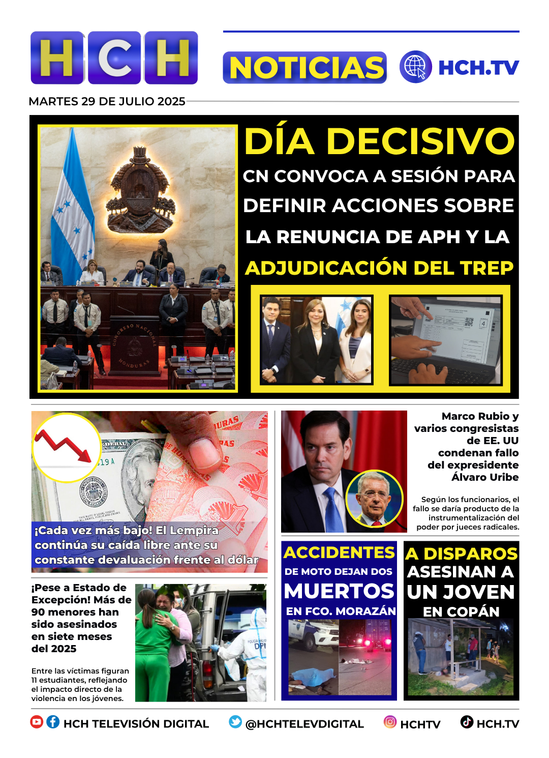 © 2025 - HCH Televisión Digital - Noticias de Honduras y el Mundo. Anillo Periférico, Complejo Empresarial Tegucigalpa, Honduras, C.A. Tel: (504) 2235-3245 / 2235-3246 / 2235-4875 / 2235-4876 LLÁMENOS GRATIS DESDE EE.UU: 3052801682 y 3052801735 © Copyright 2025 - HCH Televisión Digital. Todos nuestros contenidos están protegidos con derechos de autor.