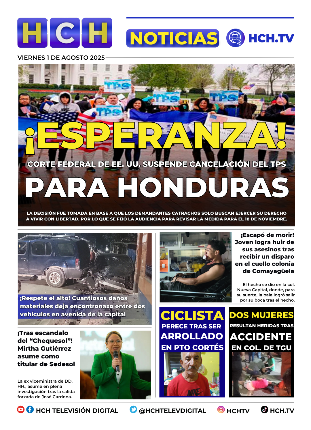 © 2025 - HCH Televisión Digital - Noticias de Honduras y el Mundo. Anillo Periférico, Complejo Empresarial Tegucigalpa, Honduras, C.A. Tel: (504) 2235-3245 / 2235-3246 / 2235-4875 / 2235-4876 LLÁMENOS GRATIS DESDE EE.UU: 3052801682 y 3052801735 © Copyright 2025 - HCH Televisión Digital. Todos nuestros contenidos están protegidos con derechos de autor.