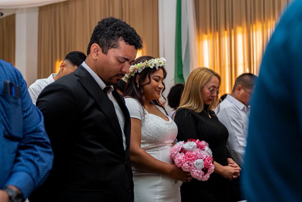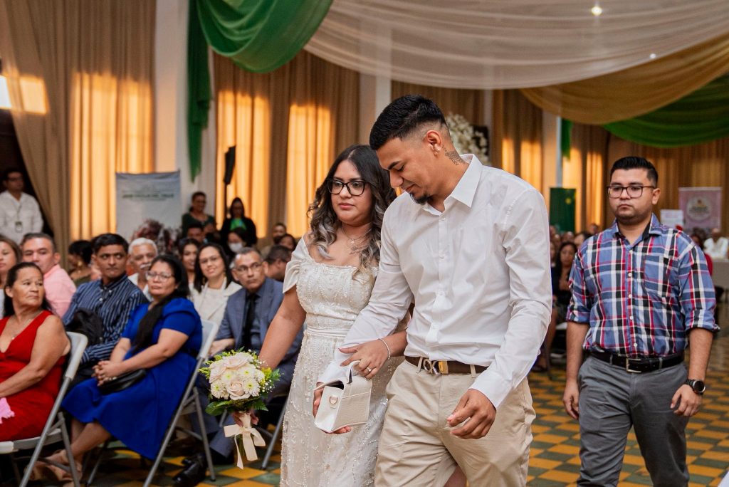 Cuarenta parejas enamoradas participaron este martes en las bodas civiles masivas de San Pedro Sula, realizadas este martes en Plaza de las Banderas como parte de la IV Edición de las Bodas de Caná.