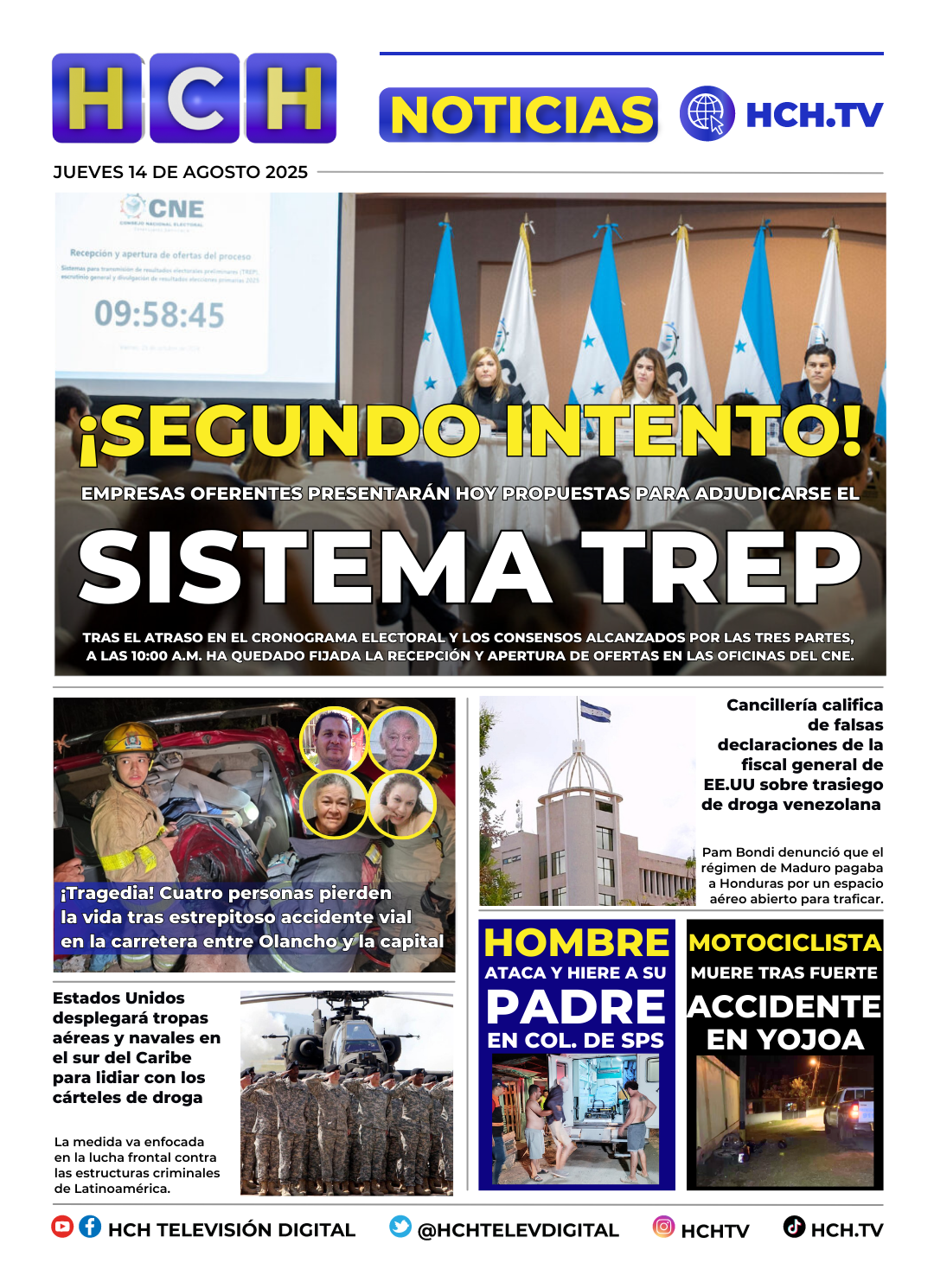 © 2025 - HCH Televisión Digital - Noticias de Honduras y el Mundo. Anillo Periférico, Complejo Empresarial Tegucigalpa, Honduras, C.A. Tel: (504) 2235-3245 / 2235-3246 / 2235-4875 / 2235-4876 LLÁMENOS GRATIS DESDE EE.UU: 3052801682 y 3052801735 © Copyright 2025 - HCH Televisión Digital. Todos nuestros contenidos están protegidos con derechos de autor.