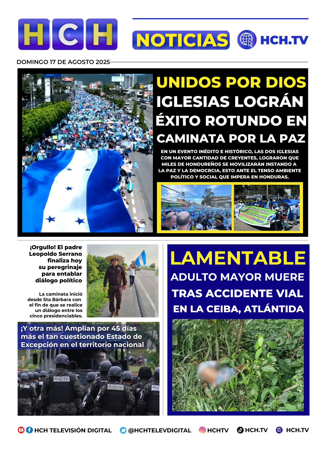 © 2025 - HCH Televisión Digital - Noticias de Honduras y el Mundo. Anillo Periférico, Complejo Empresarial Tegucigalpa, Honduras, C.A. Tel: (504) 2235-3245 / 2235-3246 / 2235-4875 / 2235-4876 LLÁMENOS GRATIS DESDE EE.UU: 3052801682 y 3052801735 © Copyright 2025 - HCH Televisión Digital. Todos nuestros contenidos están protegidos con derechos de autor.
