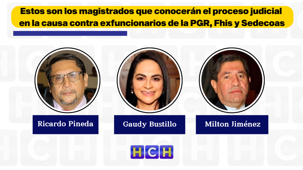 En los expedientes que señalan a exfuncionarios de la Procuraduría General de la República, FHIS y CD-Coas, los magistrados asignados son Gaudy Bustillo, Milton Jiménez y Ricardo Pineda. Estas designaciones permiten dar continuidad a procesos de alto impacto político y administrativo.