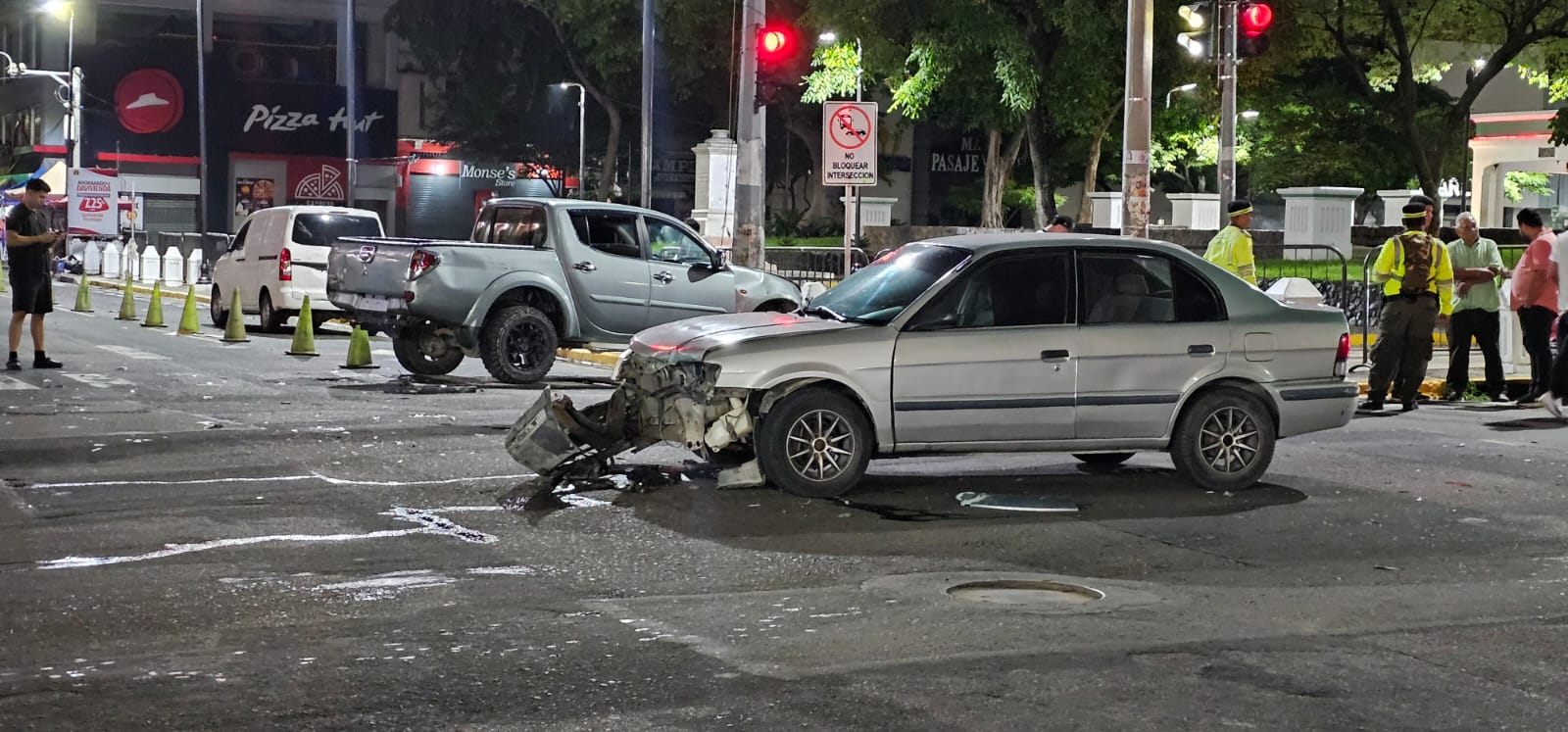 Según reportes, el vehículo tipo pick up circularía con su conductor en estado de ebriedad, colisionando contra dos autos turismos en el cruce, causando el fuerte incidente.