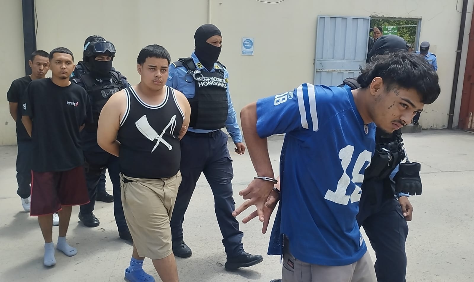 Atrapan al «Moreno», al «Malo Colombia», al «Gordito» y al «Guanti», presuntos miembros activos de la pandilla 18 en la colonia Flor del Campo de Comayagüela, durante un operativo ejecutado este martes por autoridades de seguridad.