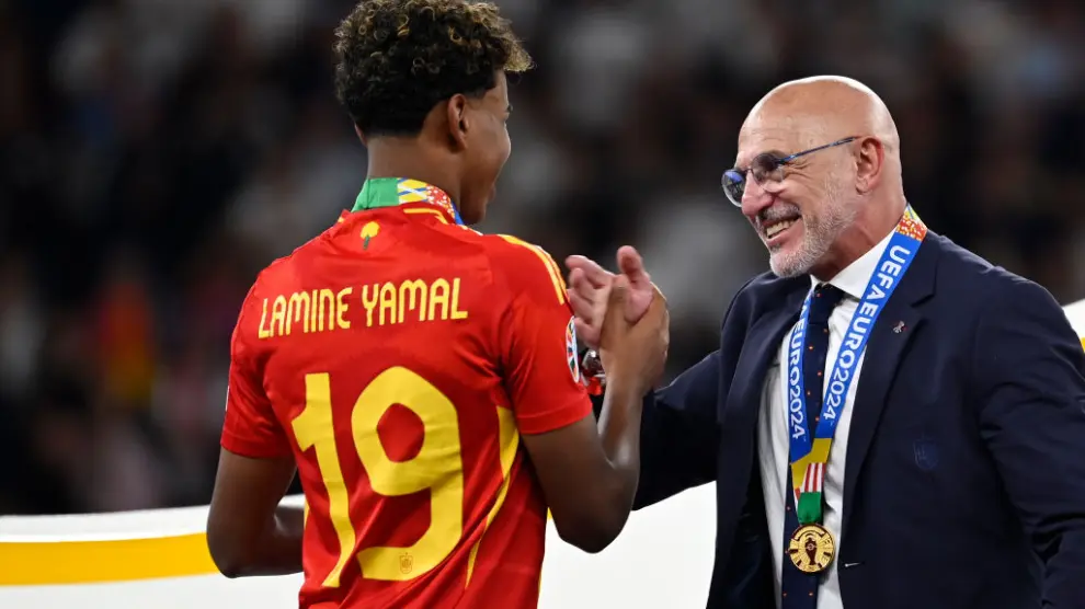 Tras anunciar su lista de convocados para los partidos de España ante Bulgaria y Turquía, el seleccionador nacional, Luis de la Fuente, salió en defensa de Lamine Yamal ante las críticas por su polémica fiesta de 18 cumpleaños y su nueva celebración, con la que parece ponerse una corona cada vez que marca gol.